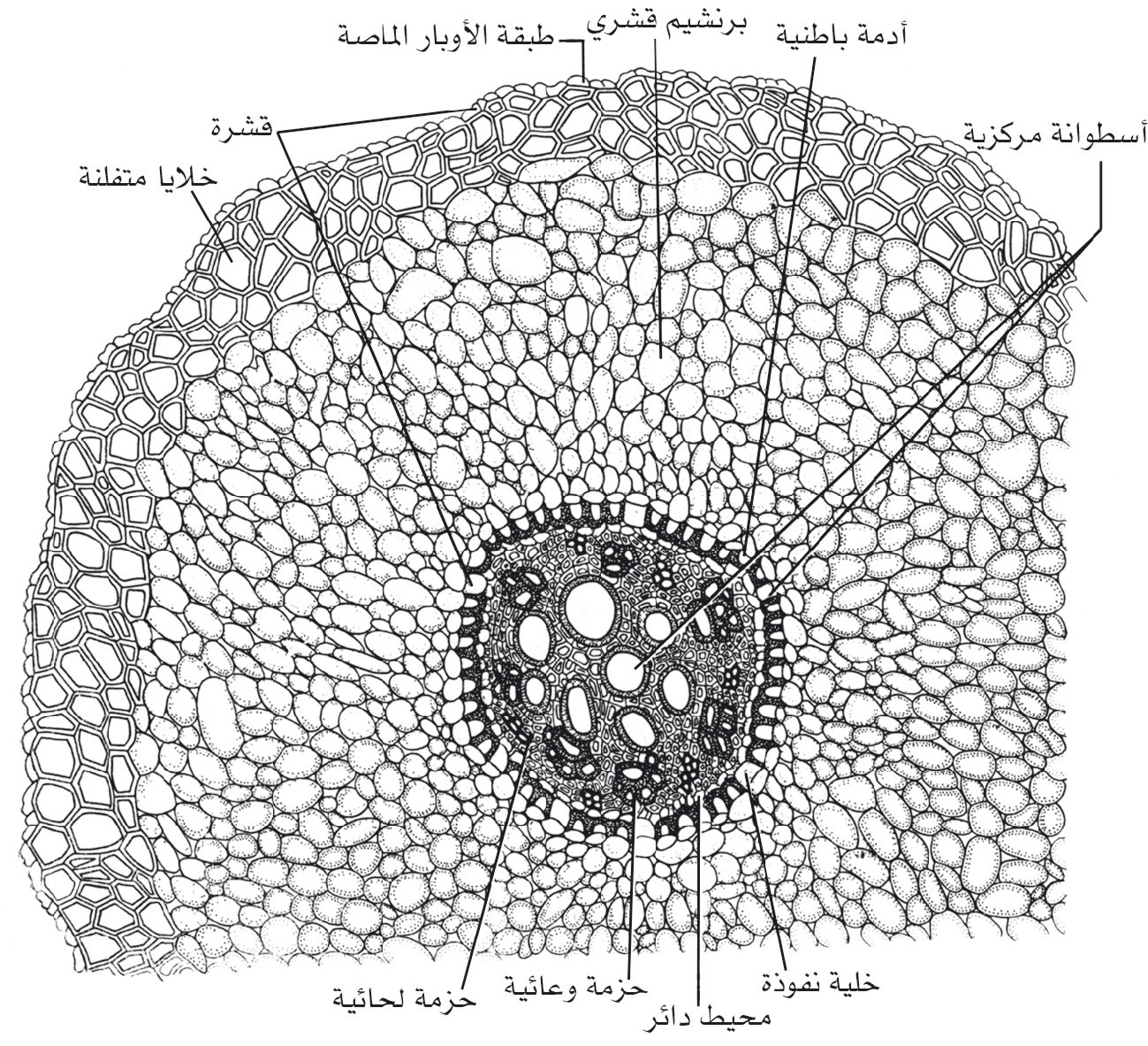 الشكل (3) مقطع عرضي في ساق نبات أحادي الفلقة |
