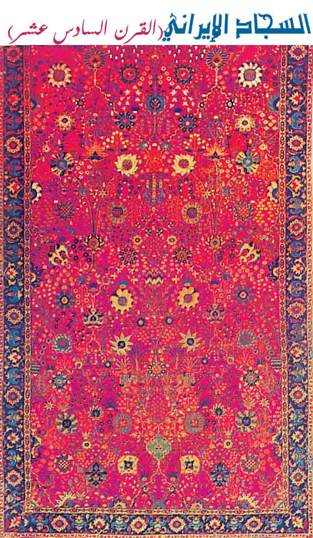 ازدهرت صناعة السجاد في المرحلة الصفوية في إيران وتطورت، ويعود أقدم نماذج السجادة ذات الصرة إلى القرن العاشر الهجري (16م) وتمت صناعتها في تبريز وقاشان وأذربيجان، وألوانها الغالبة الأحمر والأخضر والأزرق والأبيض. كذلك تعود إلى المرحلة الصفوية السجادة ذات باقات الزهور ومراوح النخيل المرتبة هندسياً بموازاة المحور، وصنعت أقدم نماذجها في القرنين العاشر والحادي عشر الهجريين (16، 17م)، وتمتاز هذه السجادة بكثافة وبرها وضيق إطارها وأرضيتها الزرقاء أو الحمراء. كما تعود إلى تلك الحقبة السجادة ذات الرسوم الحيوانية ومناظر الصيد والسجادة الحريرية المحلاة بخيوط الذهب والفضة (التي سميت خطأً بالسجادة البولندية)، في أقدم نماذجها وقد صنعت في نهاية القرن العاشر الهجري (16م).