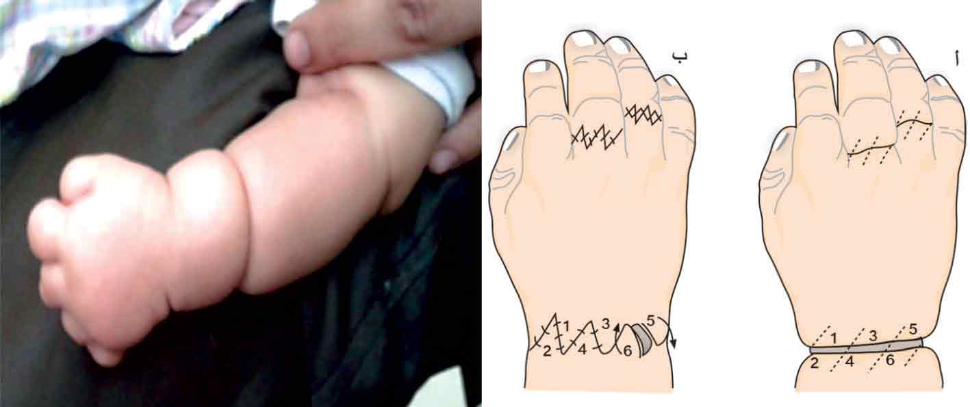 (الشكل 34) أ- يد قفداء، ب- بعد الإصلاح الجراحي |