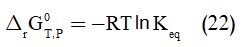 تغير طاقة جيبس المعيارية للتفاعل والتي يمكن حسابها بالاستعانة بالجداول الترموديناميكية.