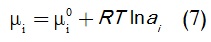 الكمون الكيميائي للنوع i ويرمز إليه بالرمز µi ويكتب كما في المعادلة (4):