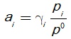الفعالية الكيميائية للنوع الكيمائي المدروس. وهي اصطلاحاً مقدار من دون أبعاد. وتعدّ الفعالية الكيميائية قياساً "للتركيز الفعال" للنوع i ضمن المزيج التفاعلي بوصفه ضمن محلول حقيقي. وعندما يكون المحلول مثالياً تصبح الفعالية قياساً للتركيز. وفيما يلي عبارات الفعالية في بعض الحالات.