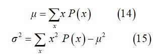 ويعطى التوقع لهذا التوزيع بالعلاقة (21)، أما التباين فيعطى بالعلاقة (22):