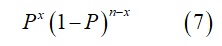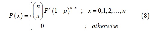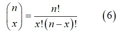 إذا كانت X عدد مشاهدات النجاح في n اختبار؛ فإنها يمكن أن تأخذ إحدى القيم الآتية: n,………..,2,1,0. وإذا كان عدد النجاحات x فإن عدد مشاهدات الإخفاق هو n-x، ومن ثمَّ فإن عدد طرائق اختيار xموقع نجاح من أصل n اختيار يعطى بالعلاقة (6):