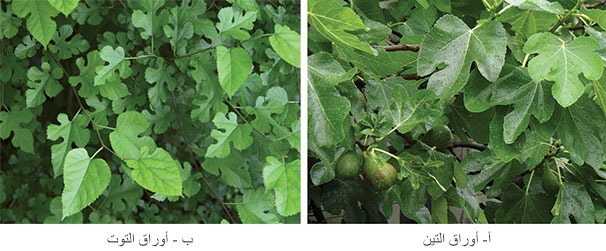الشكل (3) أشكال الأوراق في نباتات الفصيلة التوتية. |