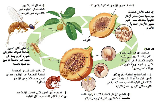 الشكل (7). مخطط التلقيح عن طريق حشرات الدبور للتينية. |