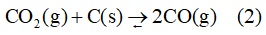 2- التوازنات الكيميائية غير المتجانسة: يكون فيها لواحد أو أكثر من المواد المتفاعلة أو الناتجة حالة مغايرة لحالة باقي المواد، مثال ذلك تفاعل غاز ثنائي أكسيد الكربون مع الكربون الصلب (s)؛ وينتج غاز أحادي أكسيد الكربون (المعادلة 2).