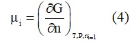 الكمون الكيميائي للنوع i ويرمز إليه بالرمز µi ويكتب كما في المعادلة (4):