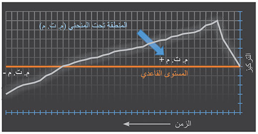| الشكل (1) طريقة تقدير التوفر الحيوي للڤيتامينات عن طريق حساب المساحة تحت المنحني (م. ت. م) لتركيز الڤيتامين وفق أوقات زمنية بعد تناوله، ومن الممكن أن تكون م. ت. م. موجبة أو سالبة. |