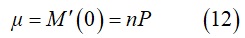باشتقاق الدالّة المولّدة للعزوم وتعويض t=0 يجري الحصول على التوقع expectationالذي يرمز إليه بالرمز µ لهذا التوزيع؛ والذي يُعطى بالعلاقة (12):