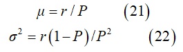 ويعطى التوقع لهذا التوزيع بالعلاقة (21)، أما التباين فيعطى بالعلاقة (22):