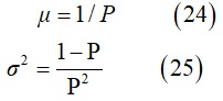 ويعطى التوقع لهذا التوزيع بالعلاقة (24) والتباين بالعلاقة (25):