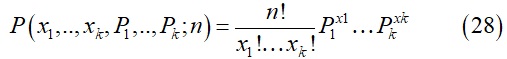 وباستخدام نظرية ضرب الاحتمالات للاختبارات المستقلة يجري الحصول على العلاقة (27):