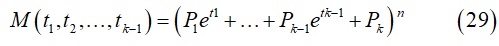 ، وتعطى الدالة المولّدة للعزوم للتوزيع متعدد الحدود بالعلاقة (29):