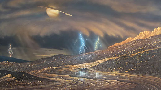 أجرى فريق عمل رادار كاسيني من مختبر الفيزياء التطبيقية في جامعة جونز هوبكنز Johns Hopkins الأمريكية، في العام 2008 بقيادة رالف لورنز Ralph Lorenz؛ دراسة للمعطيات التي حصلت عليها المركبة الفضائية كاسيني، وتبيّن له أن تيتان -قمر زحل البرتقالي- يمتلك من الهدروكربونات السائلة أكثر بمئات الأضعاف مما يتوفر على الأرض من احتياطي النفط والغاز الطبيعي؛ وتتساقط الهدروكربونات من السماء وتتجمع في ترسبات لتشكل بحيرات وكثبان.