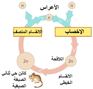 | الشكل (1) نموذج دورة الحياة مضاعفة الصيغة الصبغية لدى الحيوانات. |