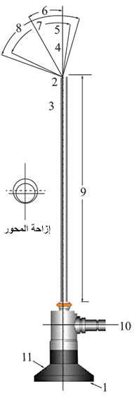 الشكل(4) مخطط توضيحي مع بعض الخصائص والمكونات الأساسية لمنظار صلب. (1) النهاية القريبة، (2) النهاية البعيدة، (3) قطر الإدخال، (4) محور الأداة، (5) المحور البصري، (6) زاوية الرؤية، (7) حقل الرؤيا البصري، (8) الليف البصري، (9) طول العمل، (10) قناة الضوء، (11) واقية العين. |