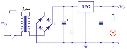 الشكل (11) البنية العامة لمنظم توتر مستمر انطلاقاً من منبع توتر متناوب.