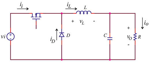 ويكون تردد التقطيع مرتفعاً، وقد يصل إلى 10-40 كيلو هرتز. ويستخدم هذا النظام في تنظيم شحن المدخرات وتغذية الأحمال من مصادر الطاقة المتجددة. ويوضح الشكل (8) نموذجاً لدارة مقطِّع تسلسلي يتم فيه فصل القاطع ووصله بتردد مرتفع بحيث يعمل على تقطيع توتر الدخل المستمر إلى شرائح، ويكون متوسط توتر الخرج الناتج أدنى من توتر الدخل.