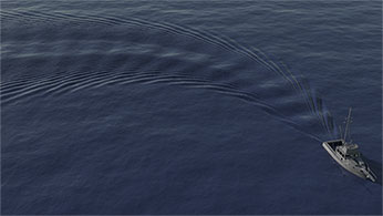 عند تحرك مركب على سطح الماء فإنه يترك تياراً واضح المعالم، ويمتد طويلاً خلفه ليصل في بعض الحالات إلى بضعة كيلومترات، ويمكن كشفه من الجو أو من السواتل حتى بعد مرور أكثر من ساعة على مرور المركب.