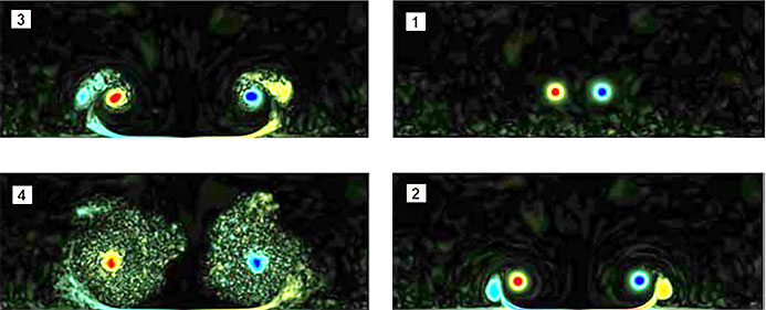 أما عندما يتحرك جسم ما في وسطٍ غازي، مثل حركة طائرة أو قذيفة في الهواء فإن الأثر الذيلي للطائرة Airplane tail trailلا يكون مرئياً غالباً، وتتطلب رؤيته وجود دخانٍ أو بخار متكاثف، كأن تمر الطائرة فوق طبقة من الغيوم الكثيفة فيظهر تأثير دوامات الأثر الذيلي على السطح العلوي لتلك الغيوم (الشكل 2).