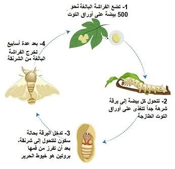 الشكل (11) دورة حياة ومراحل دود القز. |
