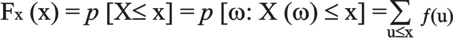 أي أن احتمال المتغير العشوائي X عند القيمة x هو احتمال الحادثة التي هي الصورة العكسية للقيمة x. وهذه الدالة تحقق الشرطين الآتيين:
