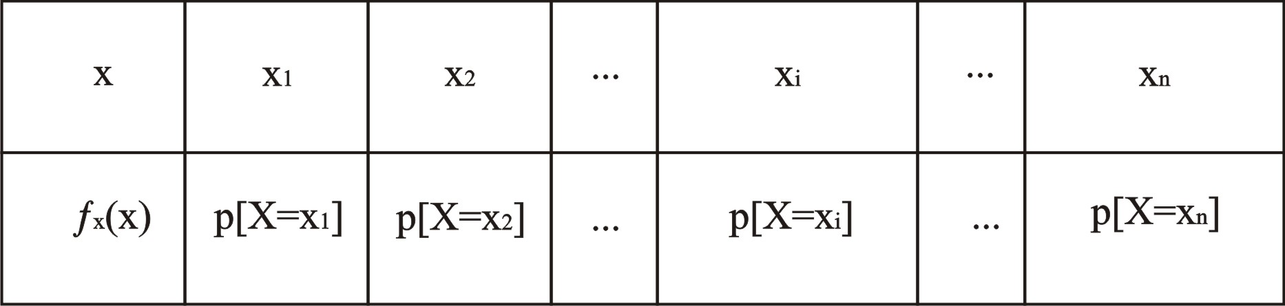 وتوصف الدالة الاحتمالية بجدول من الشكل التالي: