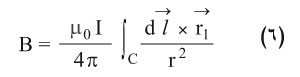 تستنتج خواص التحريض المغنطيسي الناتج من عنصر dl من عروة تيار I في نقطة P تبعد عنه مسافة r من المعادلة (5). بعد الرجوع إلى الشكل (3) يلاحظ أن:
