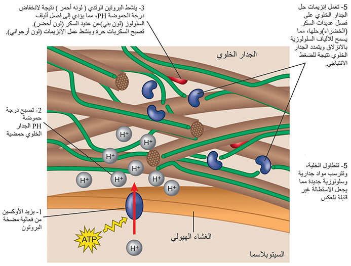 | الشكل (8) مراحل استطالة الخلية النباتية بتأثير الأوكسين. |