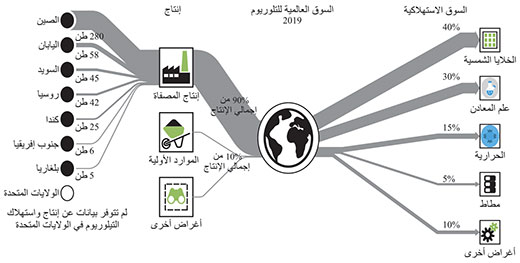 الشكل (1) الإنتاج العالمي للتلوريوم واستهلاكه في عام 2019.  |