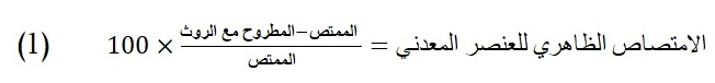 أ. الامتصاص الظاهري: يُستخدم لتقييم قيم التوفر الحيوي للعديد من العناصر المعدنية كالكلسيوم والزنك والفسفور والمنغنيز والنحاس، ويُعرّف بأنه النسبة المئوية للامتصاص الكلي للعنصر مطروحاً منه العنصر الخارج مع البراز (المعادلة 1).