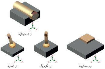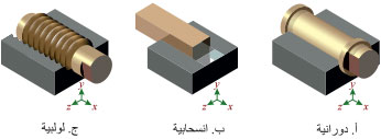 منها الرابطة الدورانيةrevolute joint التي تسمح بدوران وحيد حول محورها، والرابطة الانسحابية prismatic joint التي تسمح بحركة مستقيمة وفق اتجاه وحيد، والرابطة الحلزونية (اللولبية) screw joint التي يرتبط فيها الدوران بالانسحاب الناتج منه (الشكل 2).