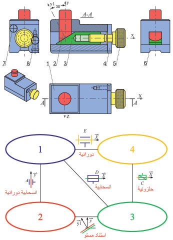 الشكل (5) مخطط الروابط لأداة توضيع دقيق ومخطط الروابط المتعلق بها. |