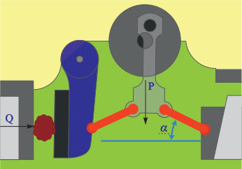 والمثال عليها كسارة الحجارة (الشكل 8)، حيث تكون العلاقة بين القوة المطبقة على الحجر