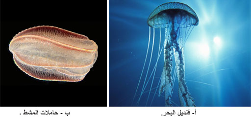 ينتمي إلى هذه المجموعة- إضافة إلى حاملات المشط - قناديل البحر(الشكل 2) المجهز كل منها بأربع قنوات شعاعية تشكل تناظراً شعاعياً رباعياً. لذلك يطلق عليها أيضاً رباعيات التناظرالشعاعي tetraradial symmetry.