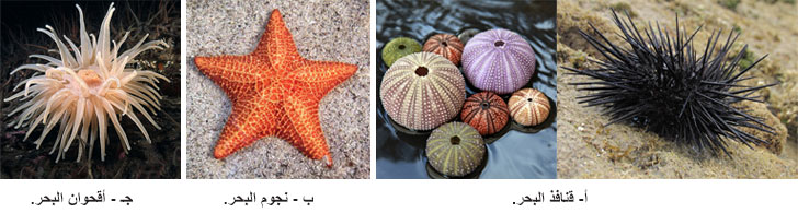 الشكل (3) نماذج لحيوانات شعاعية خماسية التناظر. |