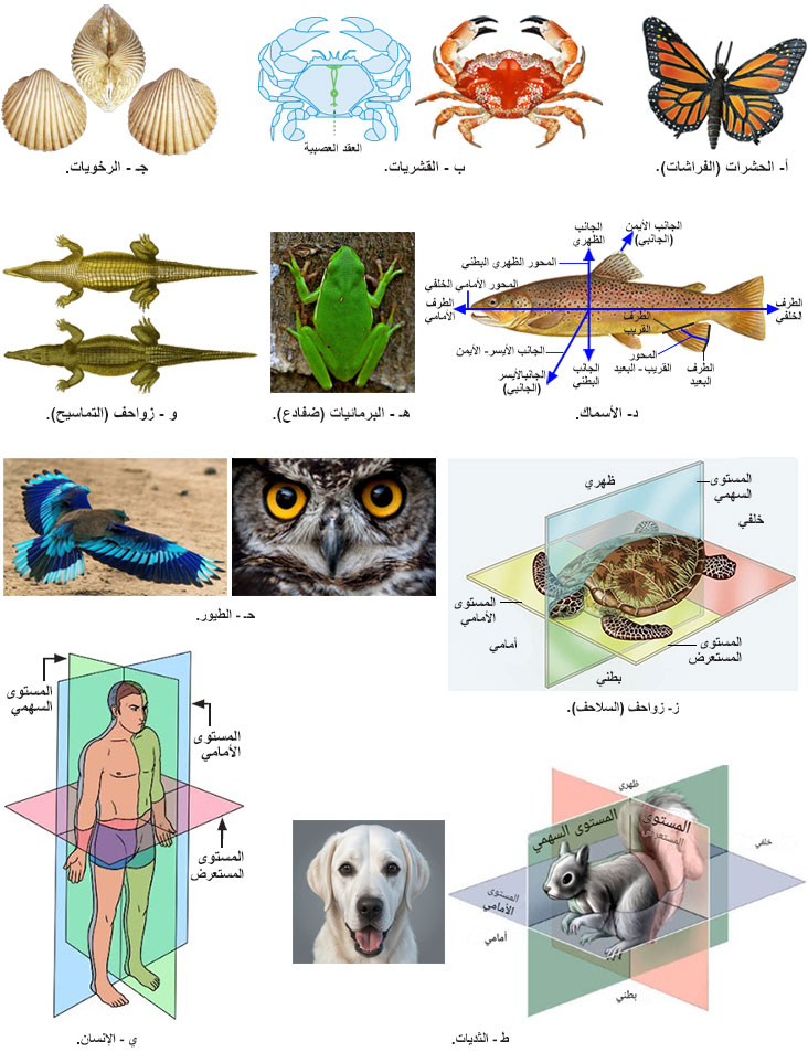 الشكل (4) حيوانات ذات تناظر جانبي.