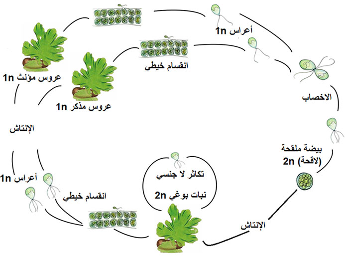 | الشكل (4) حلقة حياة الطحلب الأخضر خس البحر. |