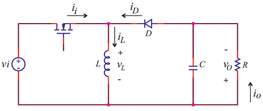 ويكون تردد التقطيع مرتفعاً، وقد يصل إلى 10-40 كيلو هرتز. ويستخدم هذا النظام في تنظيم شحن المدخرات وتغذية الأحمال من مصادر الطاقة المتجددة. ويوضح الشكل (8) نموذجاً لدارة مقطِّع تسلسلي يتم فيه فصل القاطع ووصله بتردد مرتفع بحيث يعمل على تقطيع توتر الدخل المستمر إلى شرائح، ويكون متوسط توتر الخرج الناتج أدنى من توتر الدخل.
