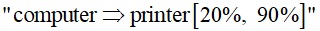 تحدد أن قيمة مقياس الدعم 20% من الزبائن يشترون الحواسيبوالطابعات معاً، ومقياس الثقة 90% من الزبائن الذين يشترون حواسيب يقومون أيضاً بشراء طابعات.