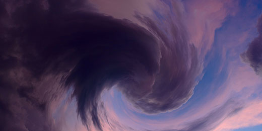 يحدث أيضاً بعض التنظيم التحريكي في حالة تيارات الحمل في الموائع ، فقد تبدأ الحركة مضطربة ولكنها قد تصير طبقية أو وفق أنماط معينة؛ كما في الصورة التي التقطها أحد السواتل (الشكل 2) في الأجواء العليا لحركة بعض الغيوم، حيث يبدو في أسفل اليسار ما يشبه الشوارع؛ في حين يظهر في أسفل اليمين بدء تشكل إعصار.