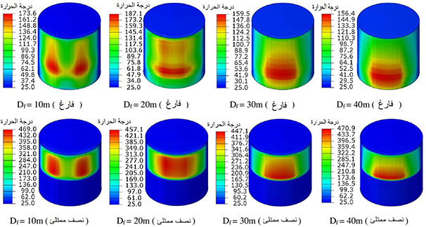 الشكل (3) تشكل أنماط تيارات مختلفة عند تسخين مائع من الأسفل، وعند الأزمنة المذكورة أسفل كل نمط.