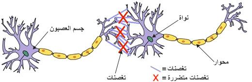 الشكل (4): انتقال الإشارات العصبية ذات المعنى بين خليتين عصبيتين بوساطة التغصنات؛ مع وجود إشارات حرارية اضطرابية دائمة.