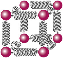 تعدّ العلاقات المعرفة السابقة مظهراً لما يجري داخل المادة، فهي بين متحولات جهرية. أما الحالة المجهرية الداخلية فتظهر بوضوح عند دراسة الأجسام الصلبة البلورية التي تمثل بشبكات بلورية تربط بين ذراتها. إذ تتوضع هذه الذرات على مسافات محددة تماماً وثابتة تقريباً عند درجة حرارة الصفر المطلق، عند ازدياد درجة الحرارة على الصفر المطلق تزداد الطاقة الحرارية، مما يسبب حركة الذرات على شكل حركة اهتزازية حول مواضع توازنها الأصلي الممثل بالحالة