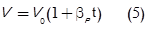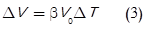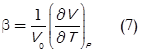 من حجمه عند درجة الصفر سلسيوس. وقد جرت العادة في التعبير عن معامل التمدد الحجمي بثبات الضغط للغازات بالعلاقة (7):