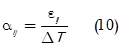 ويكون معامل التمدد الطولي للجسم الصلب معطى بدلالة ممتد الانفعال بالعلاقة (10):
