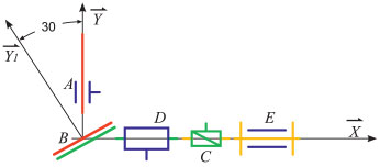 أما المخطط الحركي فيوضح توضع الأجسام النسبي في الفراغ بعضها إلى بعض، وكذلك الحركات النسبية المتاحة في المنظومة عبر الروابط التي تظهر في المخطط الحركي بشكل يوضح محاور تلك الحركات النسبية واتجاهاتها. يظهر الشكل (6) المخطط الحركي للمنظومة السابقة ذاتها.