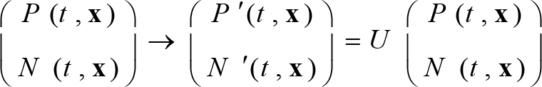 ، أو يمكن التعبير عن ذلك عموماً بإجراء "دورانٍ" على حقل النكليون في فضاء مجرّد عقديّ ثنائي البعد يمثّل البروتون والنترون محورَين متعامدين فيه: